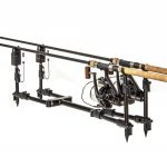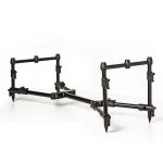 The Saber Compact Supra Pod delivers highly transportable sturdy. dependable support to your 2 or 3 rod set-up. Supplied complete with 3 Rod Buzzer Bars. yet adaptable to a 2 rod ‘single stick’ set-up. Its ultra compact design means it’s easy to transport and the Pod is fully adjustable and will adapt to all terrains via the easy-to-use cam lock levers. Plus. you can use the goalpost set-up independently of the Pod chassis for even more versatility. The Supra‘s extended length means you can get your butt rings behind your buzzers. even with 13’ rods.  Plus. the bankstick adapters will accept any 16mm banksticks. such as Saber’s ‘Black Edition’ bank ware.